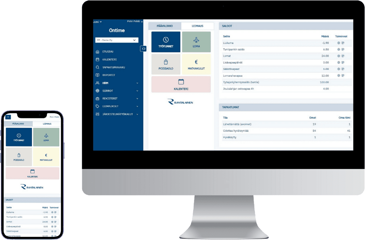 - Saldot: ajantasaiset sadot lomista, liukumista, työaikapankista ja muista